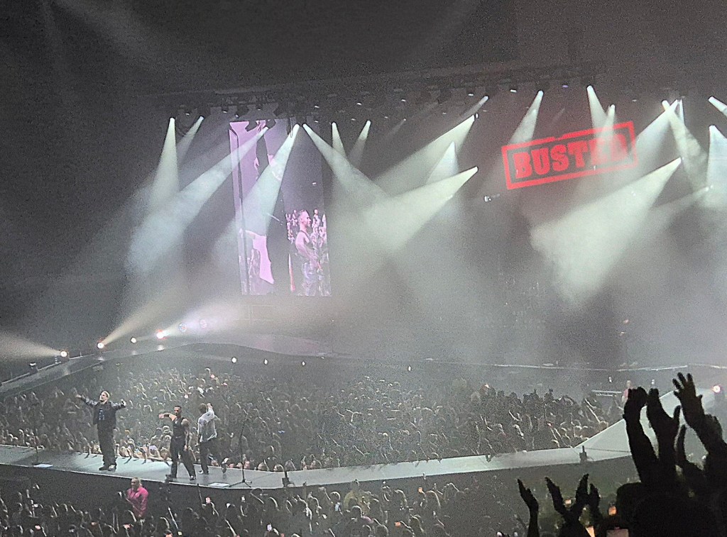 One of the biggest surprises came when Busted, McFly’s long-time friends and collaborators, took to the stage. Charlie Simpson, Matt Willis and James Bourne stormed the arena, bantering with McFly and engaging in a playful on-stage rivalry. The exchange even resulted in a broken guitar and plenty of WWE Smackdown-style jokes, much to the amusement of the crowd. And the cherry on top was the announcement of a McFly versus Busted tour in 2025, sending the audience into a frenzy.