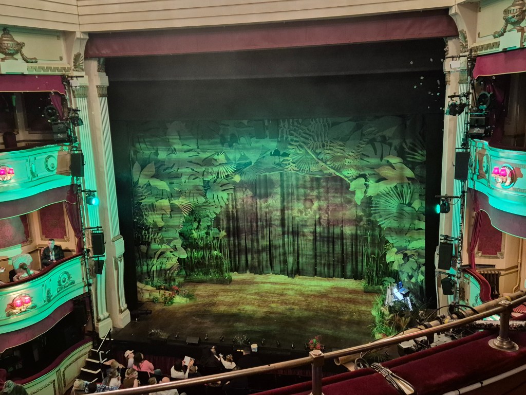 The supporting puppets were just as impressive. Each jungle creature had its own distinctive look and personality, from the bright, expressive birds to the larger animals like the monkey, hippo and bird who stood up to the crocodile’s plans. The way the puppets interacted with the performers and the set felt seamless, creating a world that was easy to believe in. The costumes, designed by Fly Davis, worked hand in hand with the puppetry, using bold colours, textured fabrics and clever shapes to extend the jungle aesthetic onto the human performers. Rather than competing with the puppets, the costumes complemented them, helping to blur the line between actor and creature. It was a smart approach that made the whole production feel cohesive.